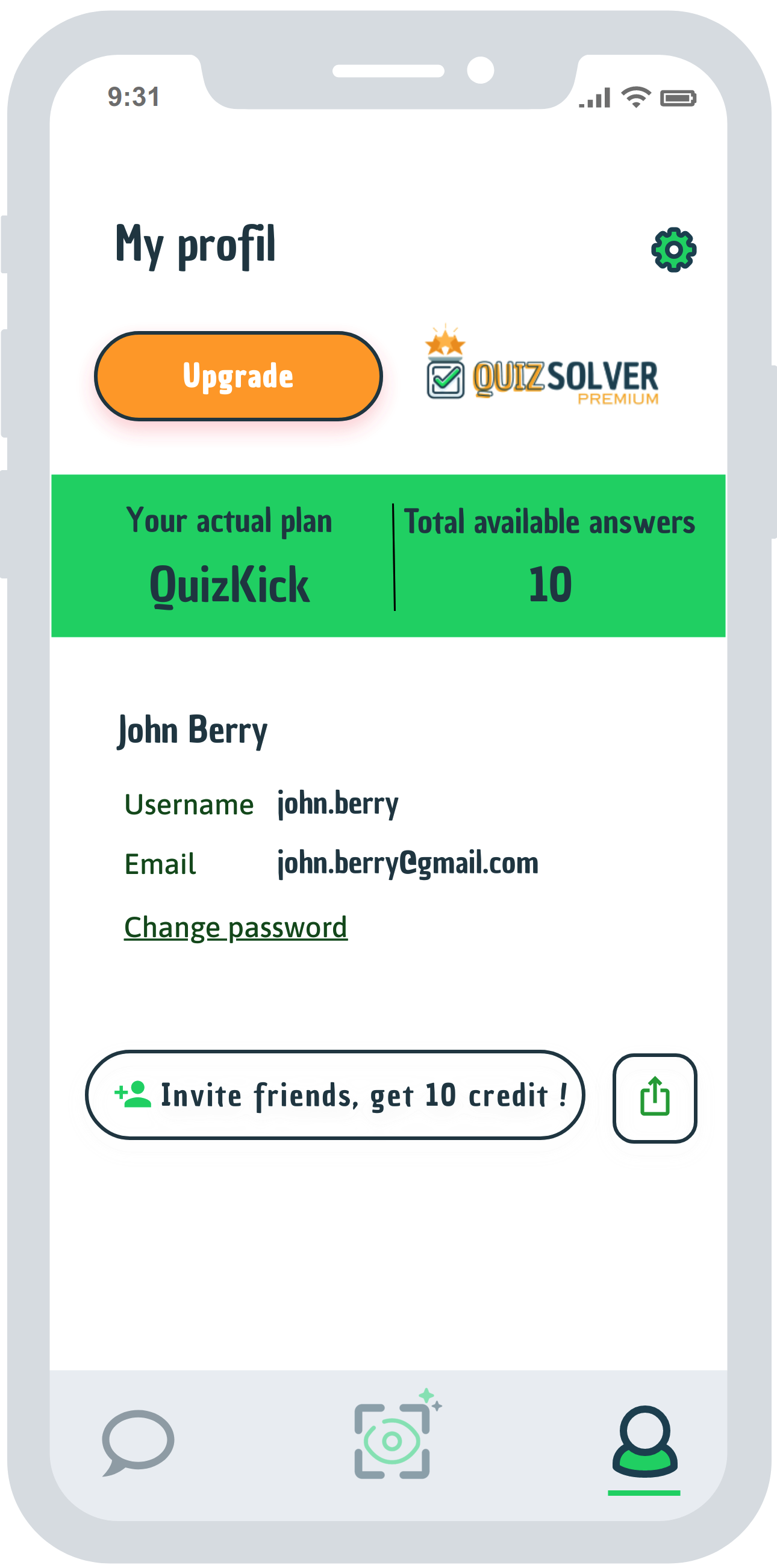 &#x20;Customize your QuizSolver experience by adjusting settings such as notification preferences, account information, and app language. The settings menu also provides access to support and the FAQ section.